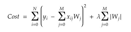 When we are using L1 regularization, the cost function equation becomes: